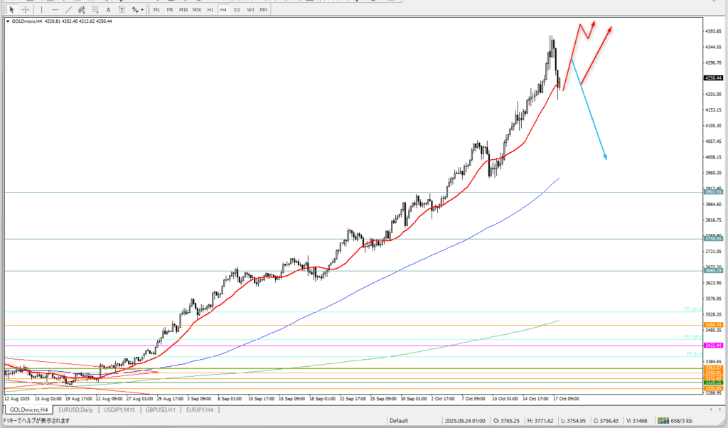 先週も金曜日に調整のような一旦大きな売りが出ましたが、日足などで見ても実体抜けしていないことから