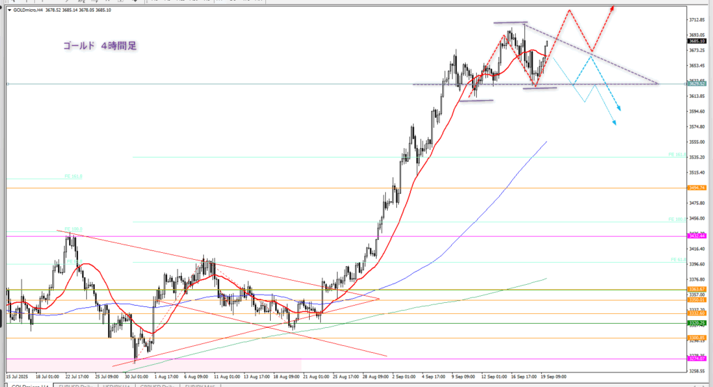 水曜日に天井になったのちに下落になりましたが、3629.5付近でしっかりサポートされた形になり
