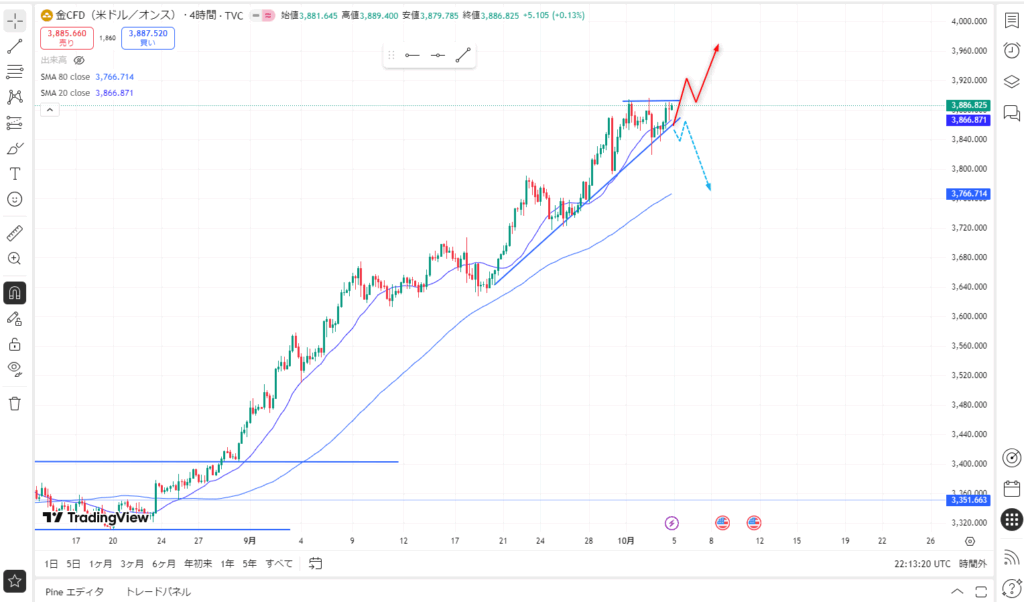 まだ天井固めという状況ではないので、ショートは狙える状況ではないところです。